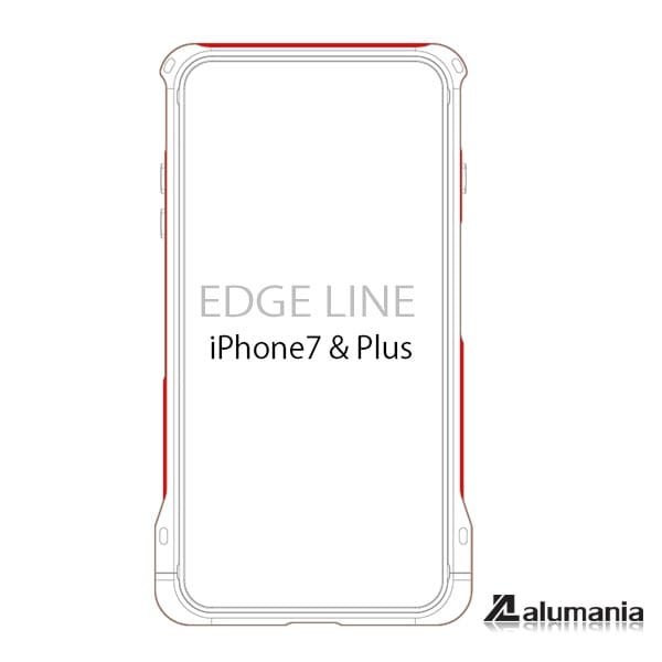 今回のiPhone7用EDGE_LINEでは、特にアウトラインは保持しておりますが、面取り部分が大きく異なります。画像の赤い部分が従来より追加した部分で、面取りカットが増えたエリアになります。これによりサイドがよりラウンド形状に近くなり、手で持ったときの感覚が従来品より滑らかに感じていただけるようになっています。