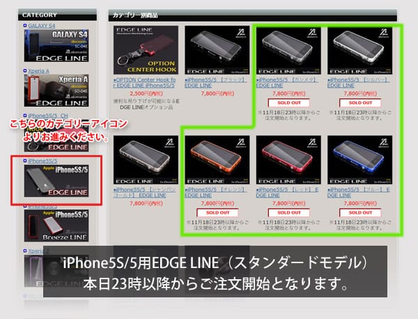 「 iPhone5S/5用EDGE_LINEの受注を開始します。 」です。