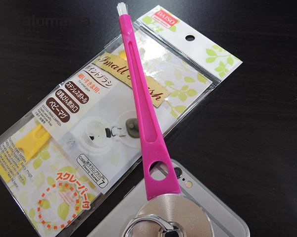 アルミベース部分と接着面には両面テープ分の隙間がありますので、そこにスクレーパーを入れて、全周を押し込んで行ってください。すると徐々に剥がしやすくなります。マイナスドライバーを突っ込みたくなるのですが本体に傷を付けてしまいますので、必ずプラスチック製を使用してください。100円ショップで販売されているような物で代用可能です。画像のものは水筒を掃除するブラシですが、片側がスクレーパーになっており、3本セットでその他の用途にも活躍しそうなお勧めアイテムです。