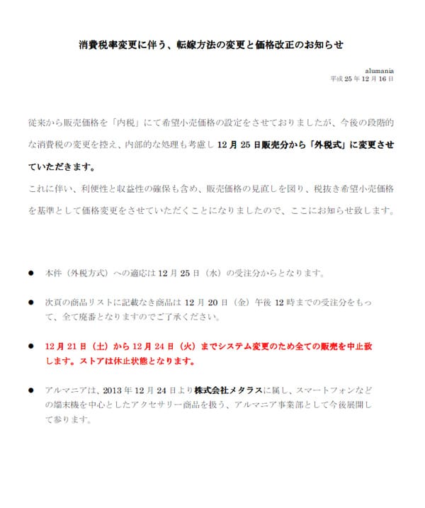 ■12/25からの販売分は外税方式、価格改正分が適用されます。