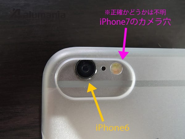 試しに取り寄せたiPhone7用のプラスチックケースをiPhone6へ取り付けてみましたところ、やはり装着ができてしまうのですが、大きなところではカメラ穴の中心が異なっていました。アンテナラインが変更になったiPhone7では考えられることなので、今までのiPhone6用のケースなどがそのままiPhone7で使えるという商品は少ないかもしれません。但し、このカメラ穴と左のスピーカー穴が気にならなければ使えてしまうとも言えます。