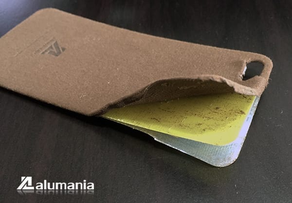 こちらは付属の背面パネルの構造となりますが、芯材には各々の厚み、硬さが異なる2枚の樹脂板を貼りあわせております。貼付け面からすると、両面テープ(剥離フィルム含む)→台紙→樹脂パネルB→樹脂パネルA→表面材の順番になっており、素材的には5枚で構成されています。意外にも?手間の掛かっている背面パネルとなっております。この記事の前後リンク