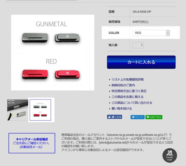 現在、標準色としたガンメタとレッドが存在しますので、プルダウンからカラーをお選びいただく形に小変更いたしましたので、こちらよりお求めいただけるようになっております。