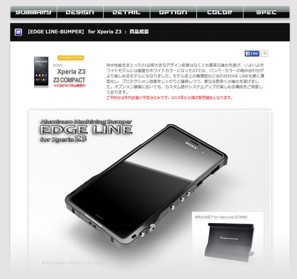 「 Z3用EDGE_LINEの商品ページをアップ致しました。 」です。