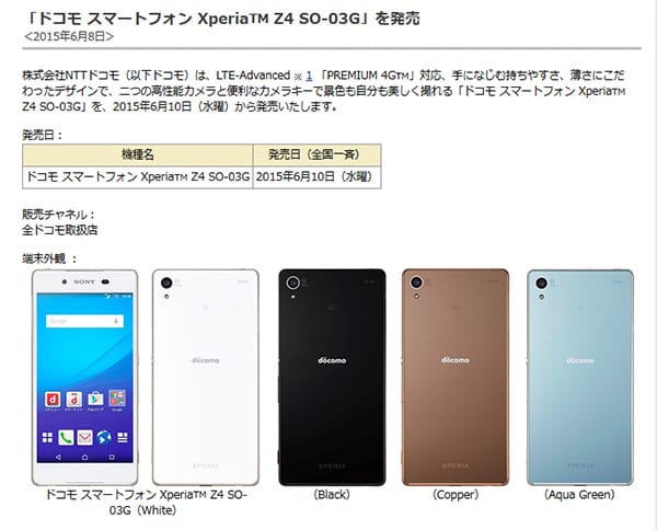 「 Z4が6月10日より発売開始となります(ドコモ) 」です。