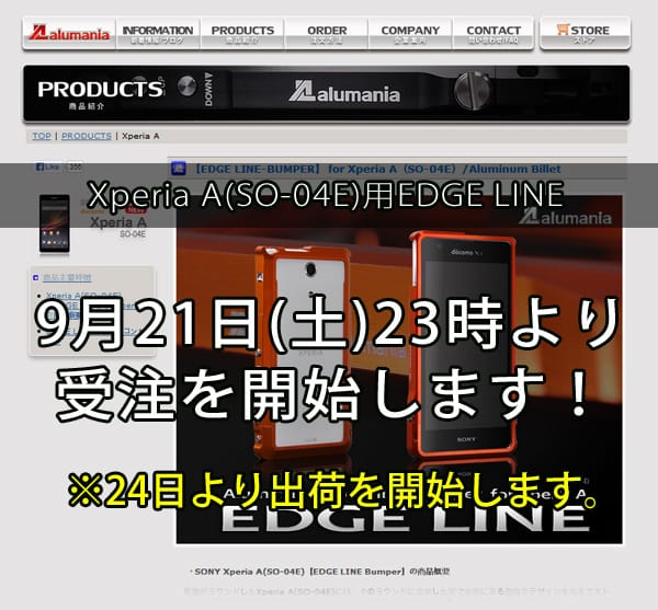 「 Xperia_A用EDGE_LINEの受注を9月21日23時より開始します。 」です。
